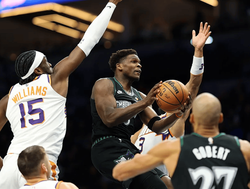 太阳在今天的比赛中对阵森林狼,这场比赛太阳虽然是缺少了布克,但是太阳却在比赛中打得很坚韧,尤其是当森林狼追分的时候,太阳就是有人站出来得分,面对这样的情况爱德华兹虽然是奋力反扑,可惜最后时刻麦丹三分打铁,后续森林狼抢到篮板球拍到了里德这里,但最终里德三分出手超时,最终森林狼是爆冷输给了太阳,全场比赛结束爱德华兹空砍40分9篮板2助攻的数据。而太阳赢球后排在西部第七的位置,森林狼排在西部第六的位置,但是现在森林狼仅仅领先太阳1个胜场。